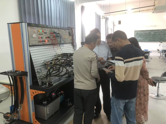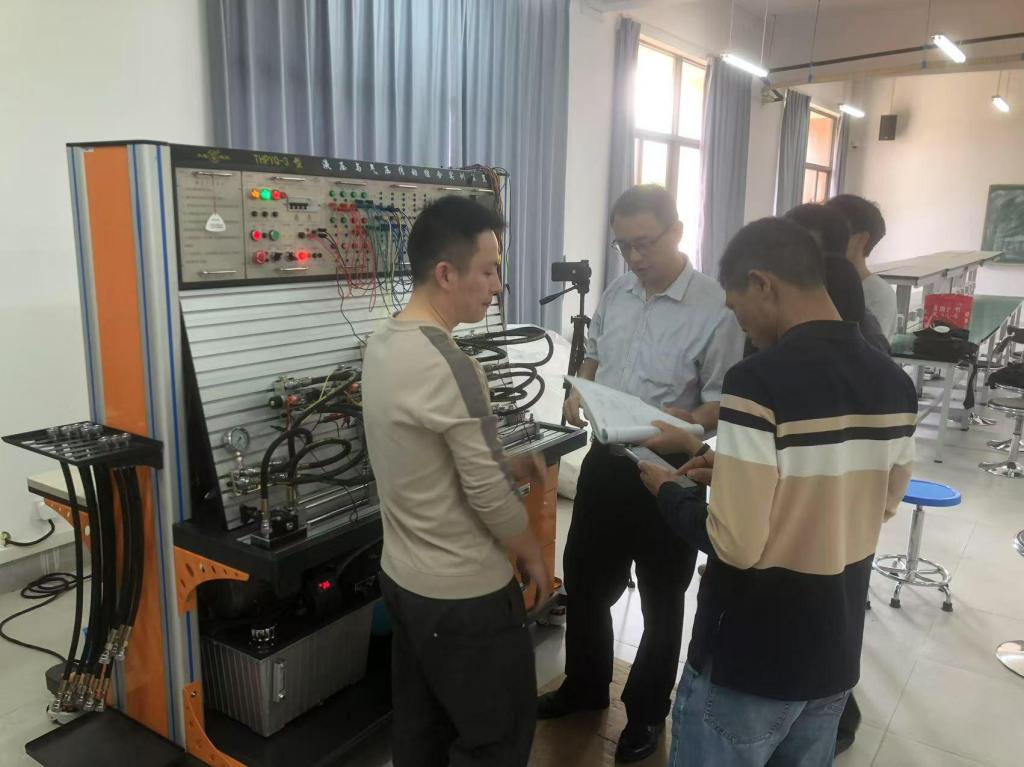 此次培训,学院领导祝院长、朱院长非常重视,积极筹备,老师们积极参与,学院聘请了浙江天煌教仪公司技术员王工程师为主讲教师,王工程师针对学校新购进的“THPYQ——3”液压与气压设备进行详细的讲解,老师们认真听取讲解,积极询问,对这套设备的实训项目、内容,以及油路、气路、电路有了全面的理解与掌握。经过此次培训,老师们的实践能力快速提升,为积极在《液压与气压》课程教学中开展项目化教学提供了有力的保障。此次培训,也对提升全院教师开展项目化教学能力,提升全院整体教学水平,提升学生动手操作能力,起到了很好的促进与带动作用。