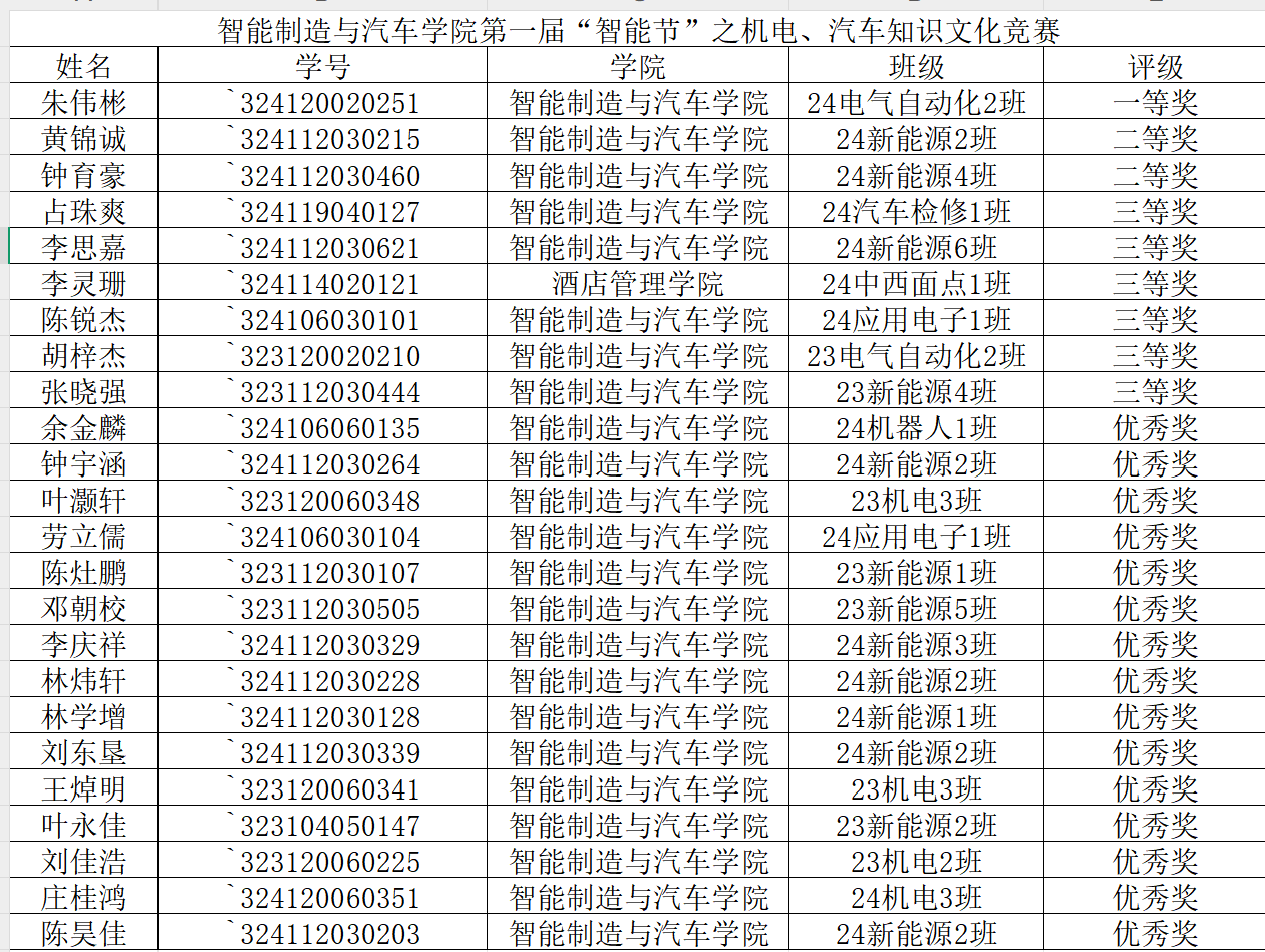 至此,智能制造汽车学院第一届“智能节”之机电、汽车文化知识竞赛圆满结束!