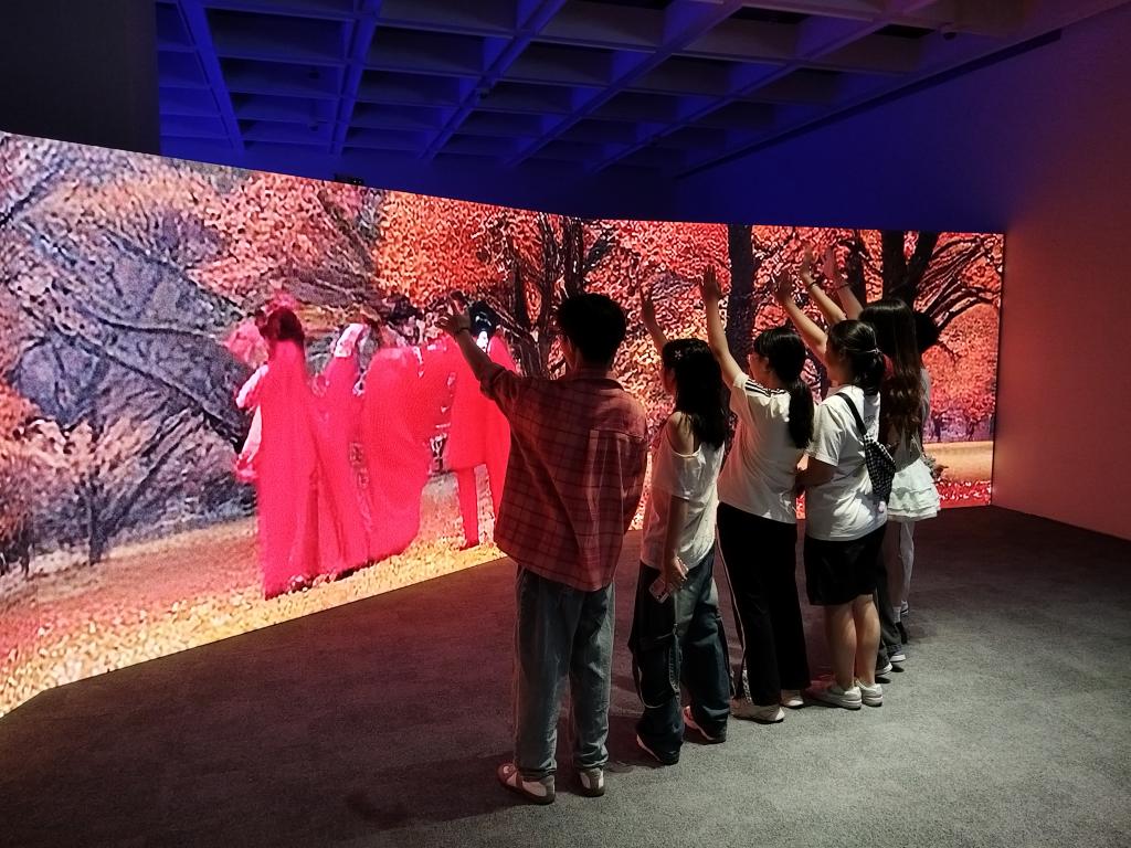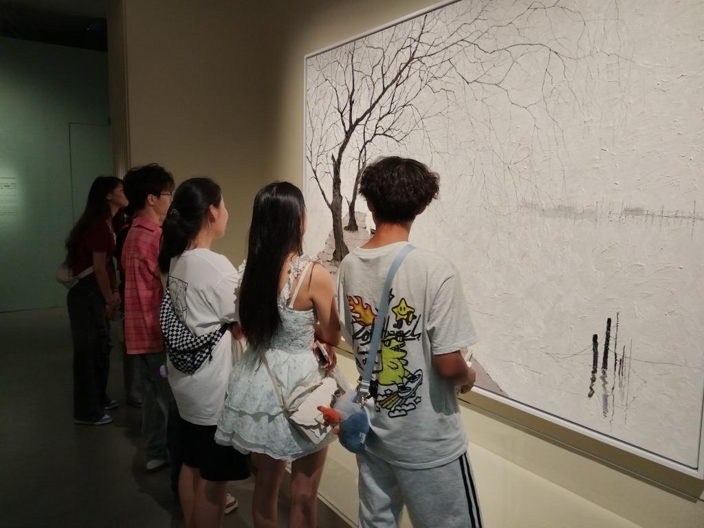 6月11日下午,研学团一行抵达香港艺术馆,香港作为国际港口城市,其艺术发展一直受到多元文化的影响。同学们通过互动体验区,进行中国水墨画创作,通过AR技术“走进”名画。艺术不仅是美的呈现,更是历史、社会和思想的载体。