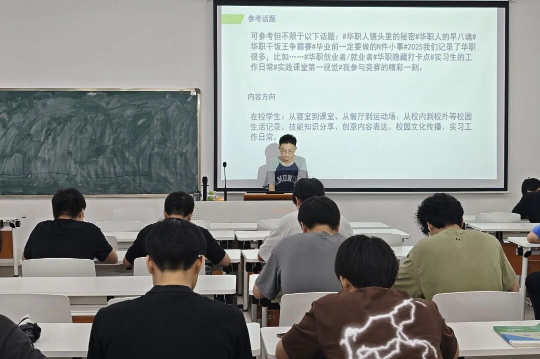 除反诈主题外,班会还融入“华商杯“校园vlog视频大赛的宣讲环节。学院鼓励学生结合专业技能与创意,通过短视频记录校园生活、展现青春风采,在提升安全意识的同时积极参与校园文化活动,实现“安全教育不松懈,青春活力不打烊”的双重目标。
