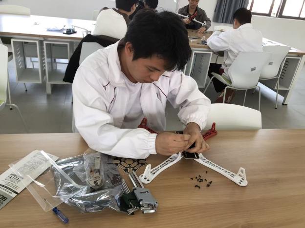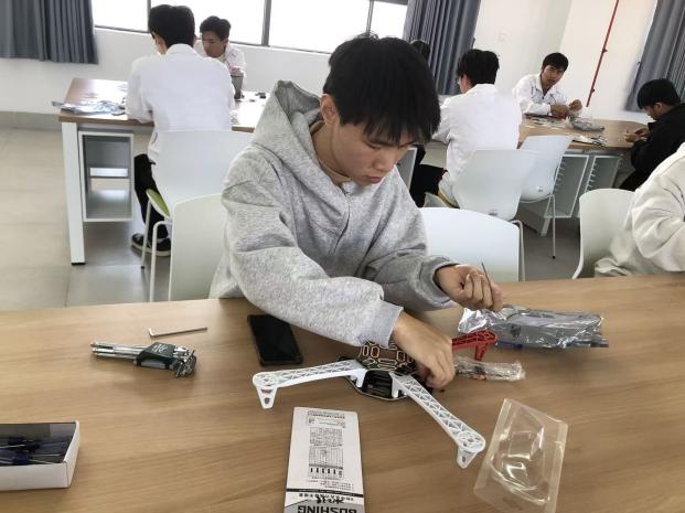 本次比赛以“理论+实操+创新”的立体化考核模式,全方位检验选手的专业硬实力。14:00,工科楼506室的组装赛场率先开赛,F450无人机机架的零散部件在选手手中迅速“归位”。从电机安装、线路排布到桨叶调试,选手们屏气凝神,每一个螺丝的拧紧力度都力求精准,用细致与耐心诠释着“工匠精神”的内涵。