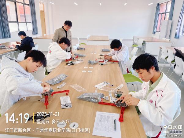 当指尖精准对接机械部件,当无人机划破长空精准归位,职业教育的匠心与活力在赛场尽情绽放!2025年11月21日下午,广州华商职业学院低空物流技术学院主办的智能飞行器应用技术校级比赛圆满落幕,工科楼506室与校内足球场两处赛场同步上演“硬核比拼”,为师生呈现了一场融合技能与创新的科技盛宴。