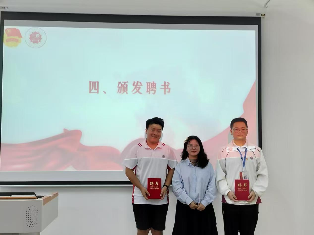 各位指导老师们为上一届学生组织成员颁发聘书,这一纸聘书,是对他们过往工作的肯定,更是对其为学院付出的深情致谢,接过聘书的瞬间,上一届成员们脸上洋溢着自豪与欣慰,他们以实际行动,生动诠释了责任与担当的重量。