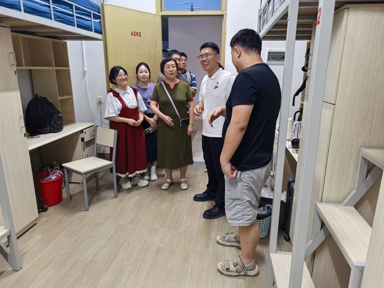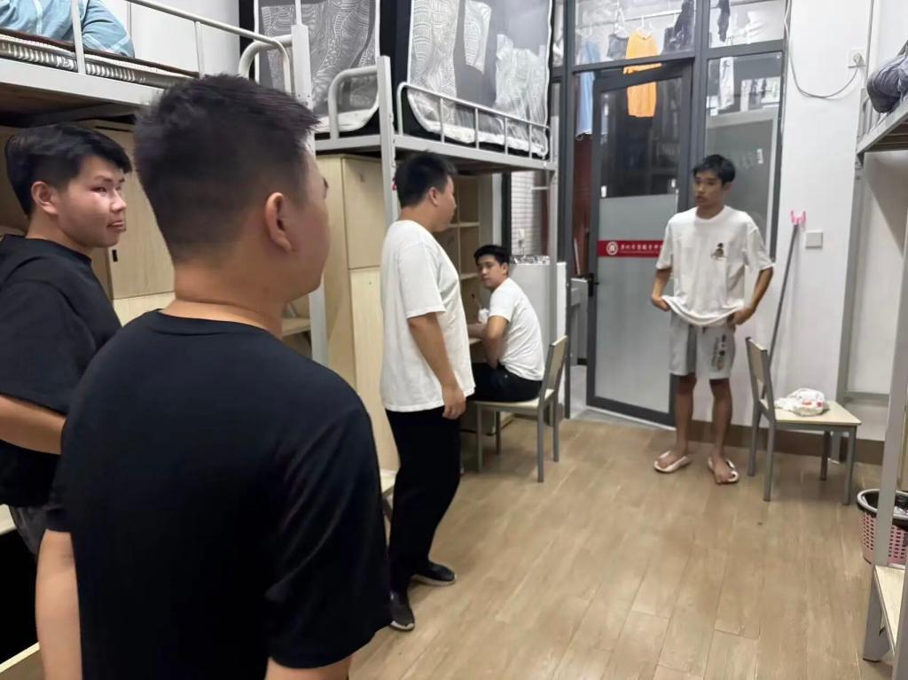 广州华商职业学院迎来了来自五湖四海的2025级新同学。为帮助新生尽快适应新环境、新生活,切实了解同学们的入住情况,8月31日,广州华商职业学院智能制造与汽车学院学院长祝常红、副院长姚柏洲带着全体新生辅导员及助理团队,共同深入新生宿舍,开展走访慰问工作,为新同学们的校园生活开启温暖的第一站。