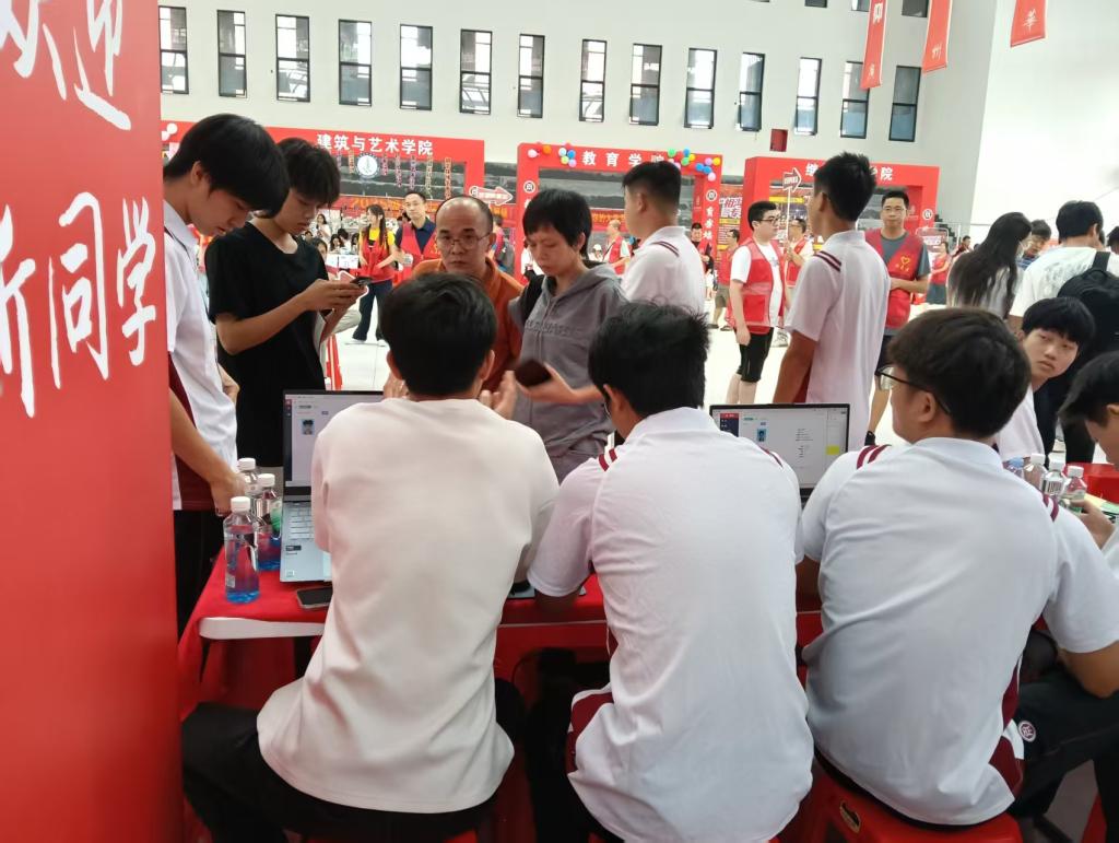 新生报到处,学院领导依旧亲自来到迎新一线,关心并详细了解注册工作的整体进展,为现场的师生员工注入持续的信心与动力。