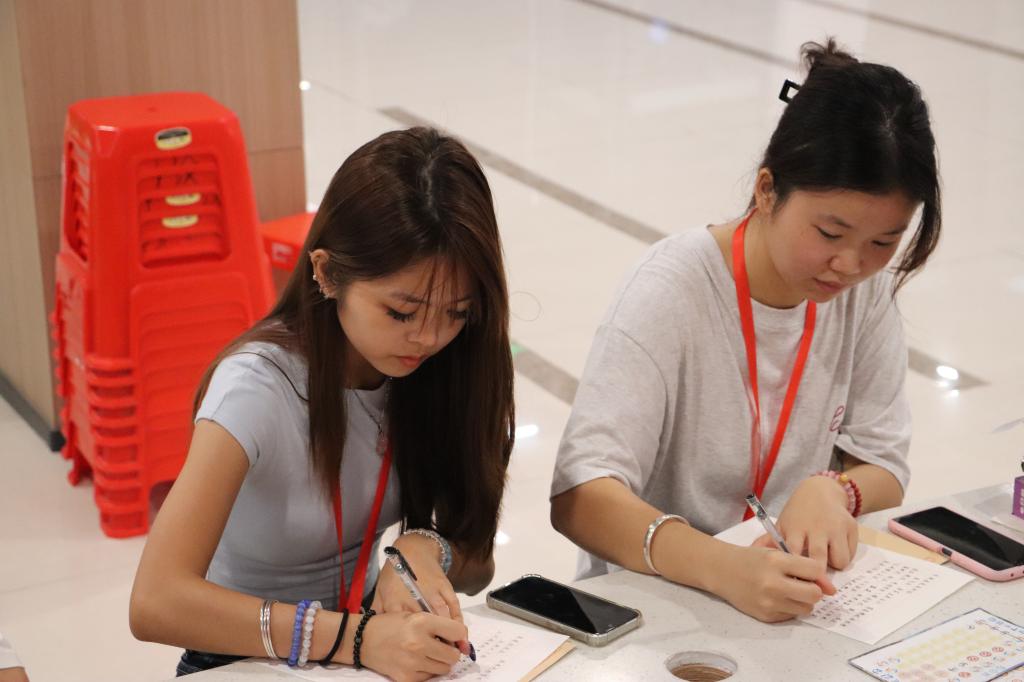 大厅一侧静默而深情。同学们伏案书写,将思念与牵挂倾注笔端。一封封家书,不仅传递亲情,更成为这个中秋最温暖的纪念。