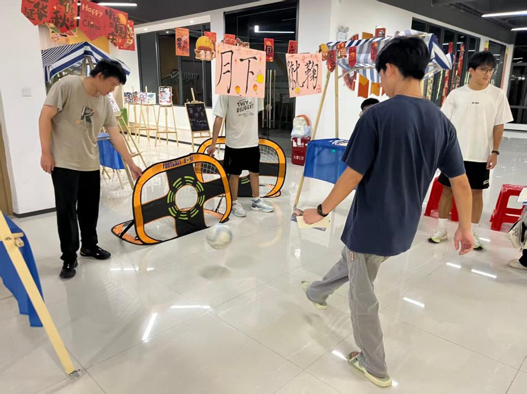 体育区则是一片朝气蓬勃。同学们一次次瞄准、起脚,体验千年蹴鞠的力与美,仿佛完成了一场与古人的活力对话,尽显文化在运动中的传承。