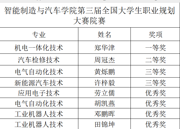 此次职业规划大赛为我院学生提供了一个展示自我、探索职业发展的平台,使同学们更深入地认识到职业规划的重要性,激发了他们为实现职业目标而努力学习和奋斗的热情。未来,希望智能制造与汽车学院的学子们在专业道路上继续前行,用技能书写青春的答卷,向着更广阔的舞台奋进!