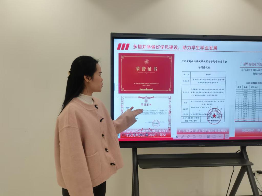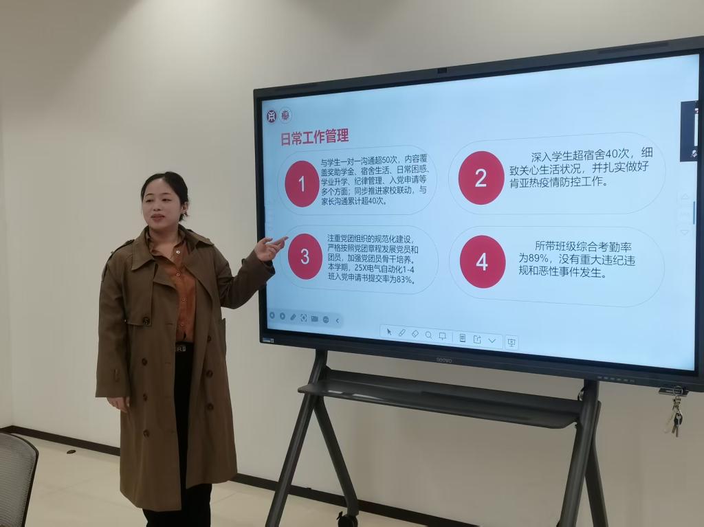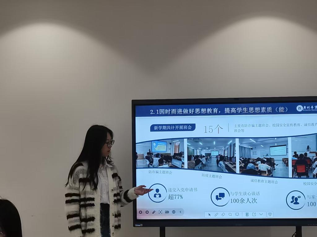 会上,16名辅导员紧密围绕立德树人根本任务,以详实的数据成果与生动的育人案例,聚焦德、能、勤、绩、廉等方面,系统汇报了2025年下半年的工作实绩。