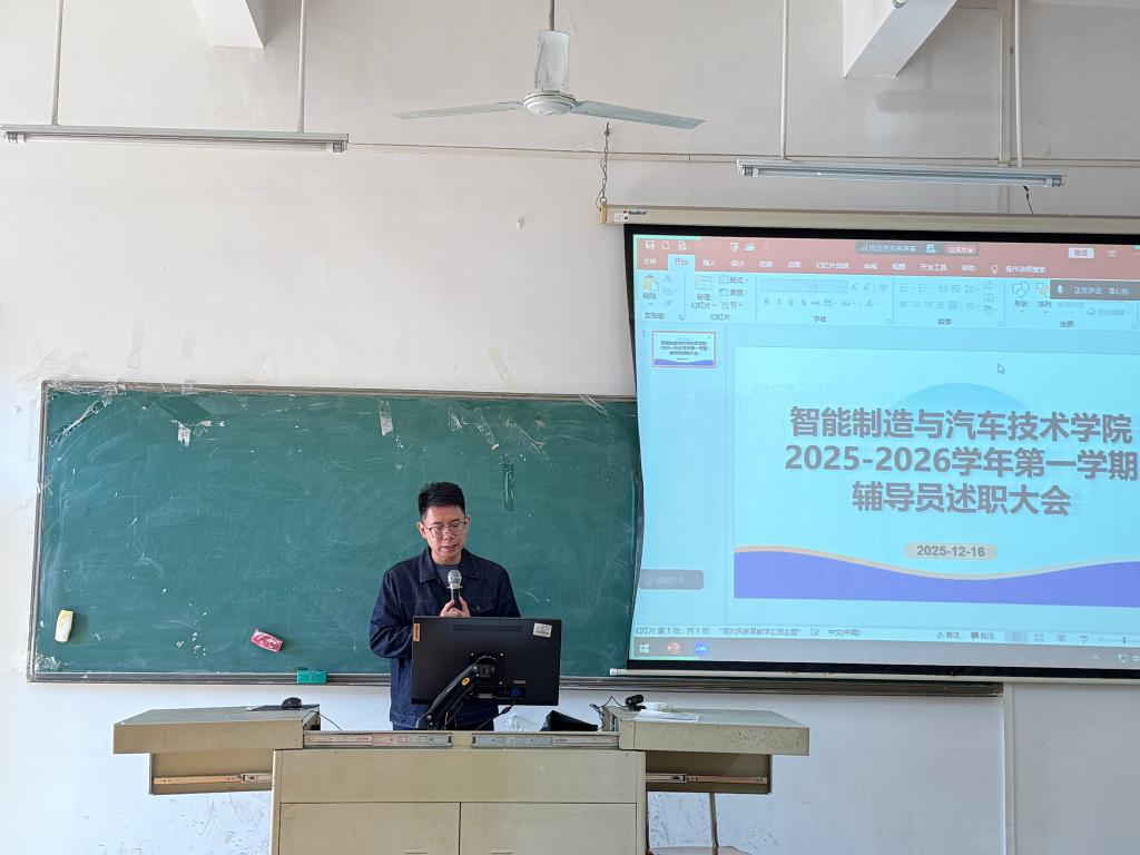 为深入落实立德树人根本任务,全面总结2025-2026学年第一学期来学生工作成效,凝练育人经验,提升辅导员队伍专业化水平,12月16日,智能制造与汽车技术学院辅导员年终述职大会在博C506和广汉书院知行轩进行 ,学院党总支副书记姚柏洲、全体辅导员参加会议。