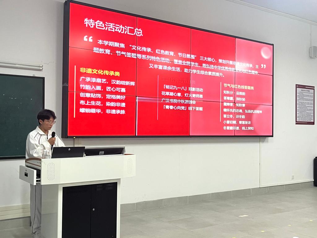 党务助理团、团委办公室、学生会、志愿者协会、新媒体中心等各学生组织负责人依次登台,全面汇报本学期工作开展情况。汇报围绕校园文化活动策划、学生日常服务保障、学科竞赛组织协调、志愿服务开展等核心板块展开,内容详实、重点突出。各组织代表通过具体数据、生动案例,系统梳理了本学期在丰富校园文化生活、助力学生成长成才、服务师生实际需求等方面取得的亮眼成绩,从日常学风督导、权益服务的高效推进,到组织学子参与各级各类学科竞赛并斩获佳绩,每一项成果都凝聚着学生组织的辛勤付出。同时,各负责人也秉持求真务实的态度,深度剖析了工作推进中存在的短板与不足,如活动形式创新不足、各组织协同联动不够等,并结合学院发展规划与学生需求,明确了下学期“深耕品牌活动、强化团队协作、提升服务精度”的工作重点与攻坚方向,充分展现出学生组织担当作为、求真务实、锐意进取的责任意识与青春风采。