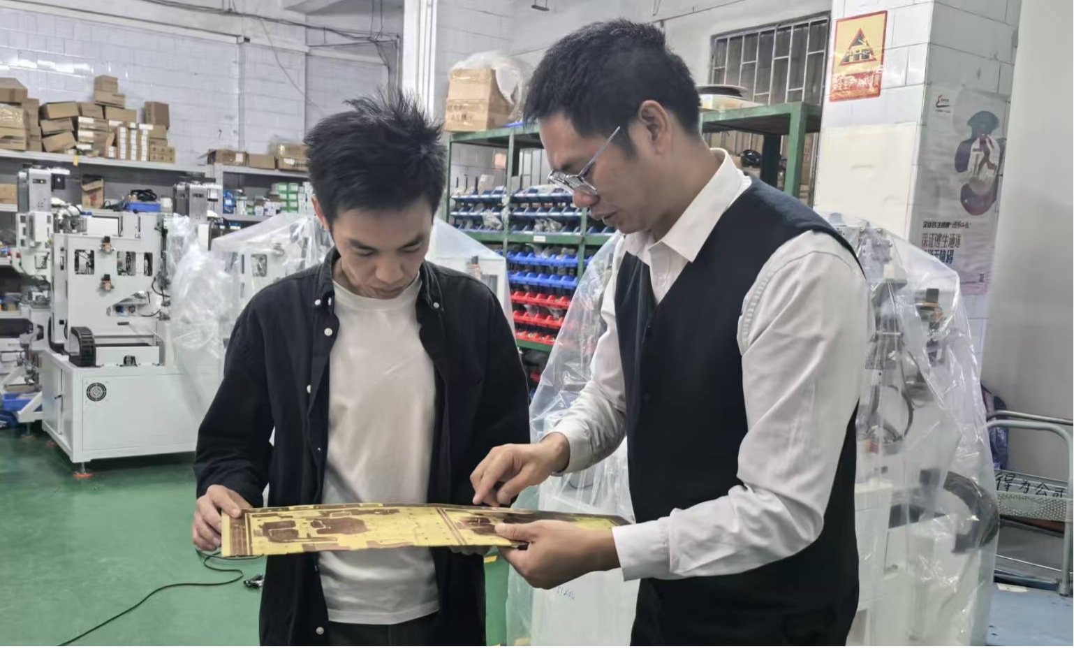参观过程中,郑锦汤副教授结合新能源汽车技术专业的人才培养需求,与蔡振得总经理就线路板制造设备在新能源汽车领域的应用场景、技术发展趋势等问题展开深入交流。郑老师表示,新能源汽车的快速发展对线路板的精密制造、稳定性等提出了更高要求,得为科技在核心工艺设备上的技术创新与实践经验,为职业教育的课程设置、实训基地建设提供了宝贵的行业参考。他希望以此次走访为契机,推动双方在人才培养、技术研发、实训就业等方面开展深度合作,助力学生精准对接行业需求,提升专业技能与就业竞争力。