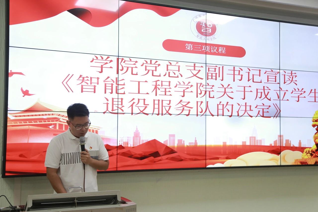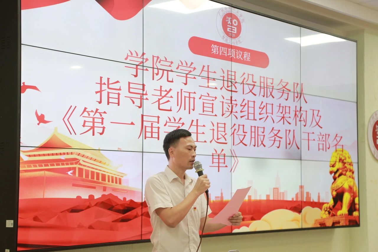 党总支部副书记姚柏洲宣读《best365官网登录入口关于成立学生退役服务队的决定》。