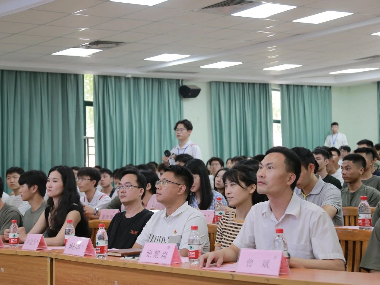 学校后勤保卫处科长叶德志发言。他结合自身经历为退役学生传授经验,切实关心退伍学生的成长,帮助退伍学生尽快转变身份适应校园生活。