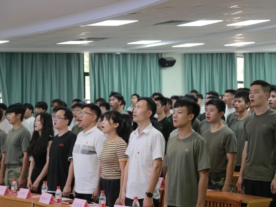 会议伊始,全体师生奏唱《中华人民共和国国歌》,表达对祖国的热爱。