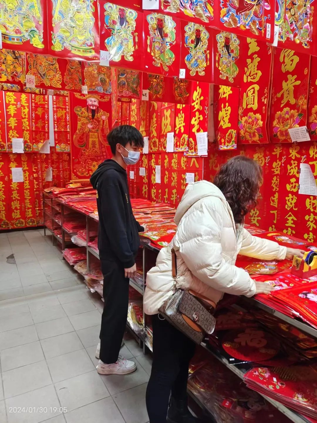 随着春节脚步的临近,新春年味逐渐浓起来,家家都要张贴对联,而“写春联、送福字”更是中华民族的传统习惯。我利用寒假在镇里找了份卖对联的工作,也借此认识到了许多除了对联外还有各种春节要贴的东西;通过客人的描述也认识到随着时代的发展,各式张贴的东西也慢慢简化,却同时能够融入各样的民俗文化。