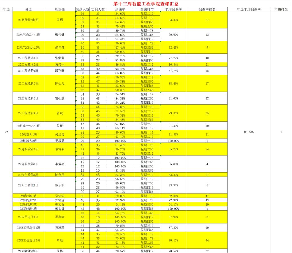 第十三周的查课汇总到这里就结束啦,辛苦各位查课的干事们,也感谢各班班委的支持和配合。