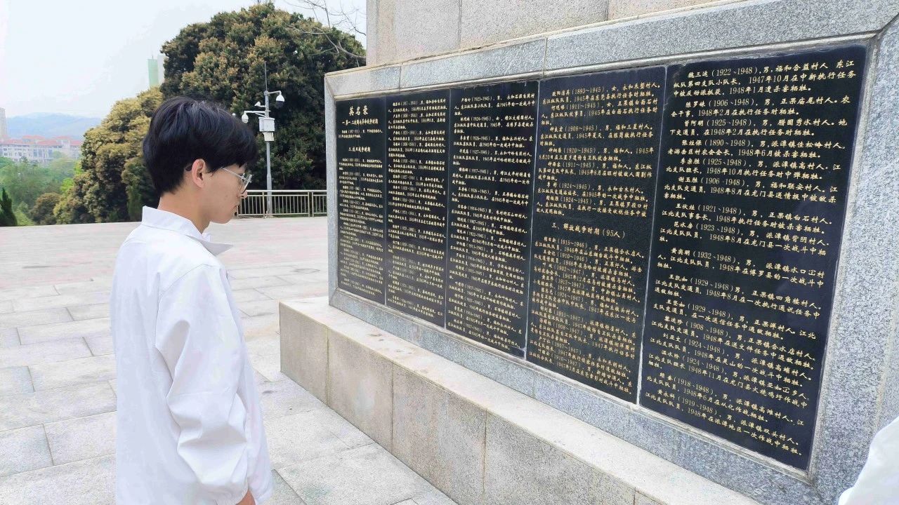 在增城革命烈士纪念碑前,同学们神情肃穆,饱含着对革命先烈的崇高敬意,以及对那段峥嵘岁月的深切追思。