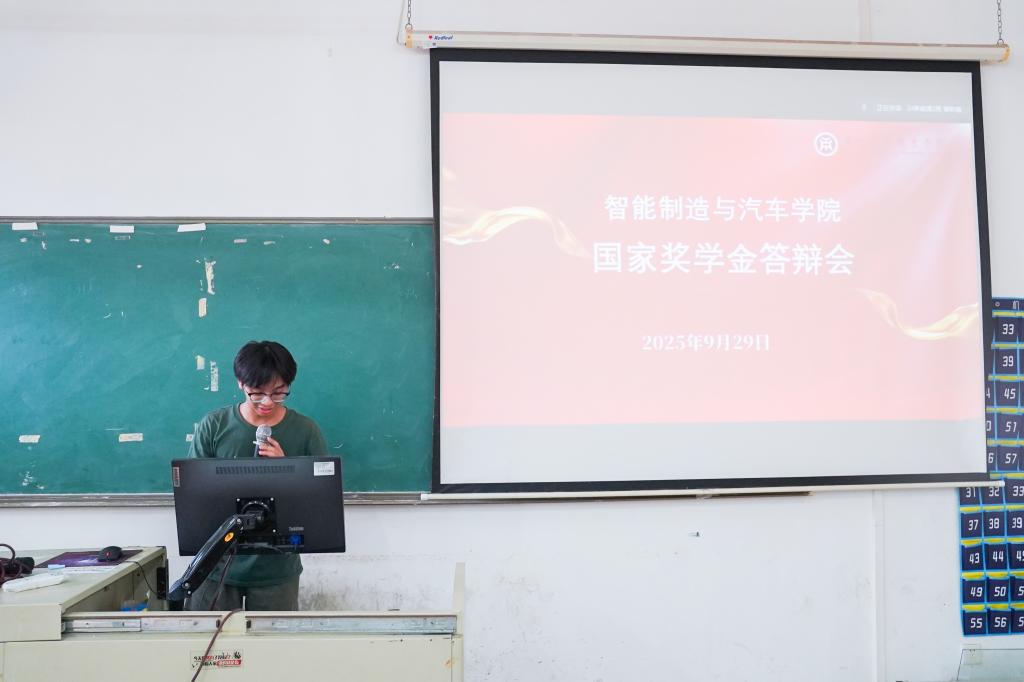 为激励广大学生勤奋学习、努力进取,在德、智、体、美、劳等方面得到全面发展,充分发挥国家奖学金的激励和导向作用,营造崇尚先进、学习先进的良好学风校风,智能制造与汽车学院于2025年9月29日,在博学楼B502开展了2025-2026学年国家奖学金答辩会。