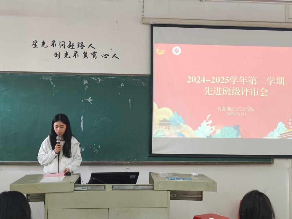 为充分彰显先进班集体的蓬勃朝气与团结协作的精神风采,发掘班级中的卓越典范,树立榜样标杆,进一步点燃全院学子参与班级建设的热忱与动力,智能制造与汽车学院于11月12日12:10在博B506教室隆重举行2024-2025学年第二学期先进班级评审会。