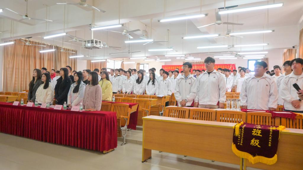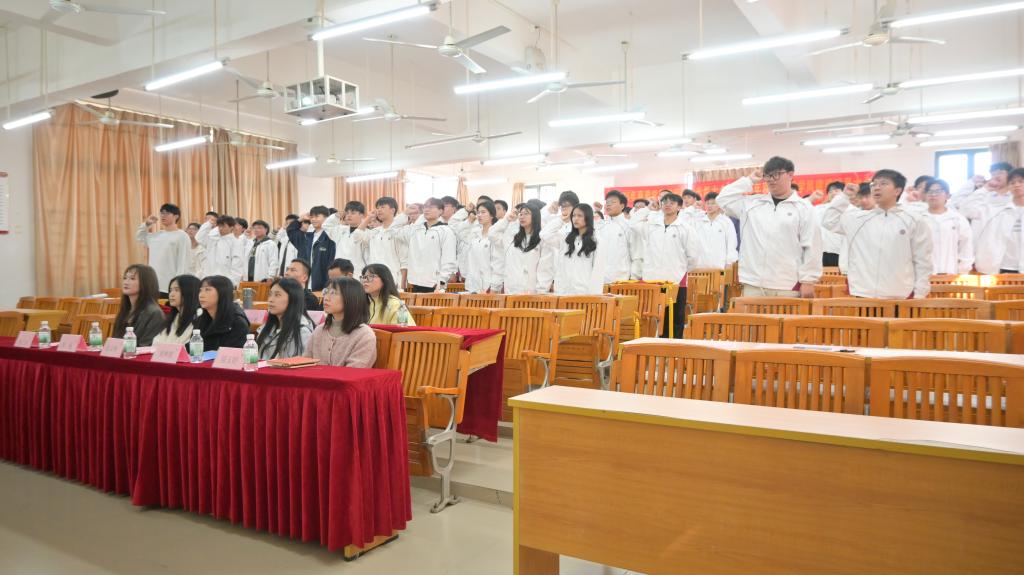 大会伊始,全场师生肃立,奏唱中华人民共和国国歌。雄壮的歌声激荡着每个人的爱国情怀与奋斗决心。