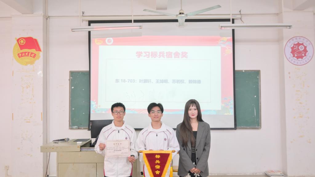 “学习标兵宿舍”由魏文香老师颁发,展现了寝室成员互帮互助、比学赶超的良好氛围。