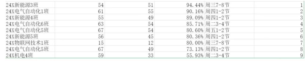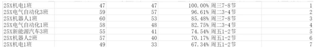 智能制造与汽车技术学院团委工作人员对智能制造与汽车技术学院(江门校区)第十六周的学生课堂情况和学生到课率进行了统计。