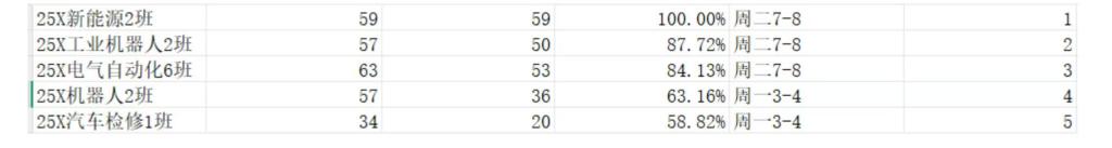 智能制造与汽车技术学院团委工作人员对智能制造与汽车技术学院(江门校区)第十四周的学生课堂情况和学生到课率进行了统计。