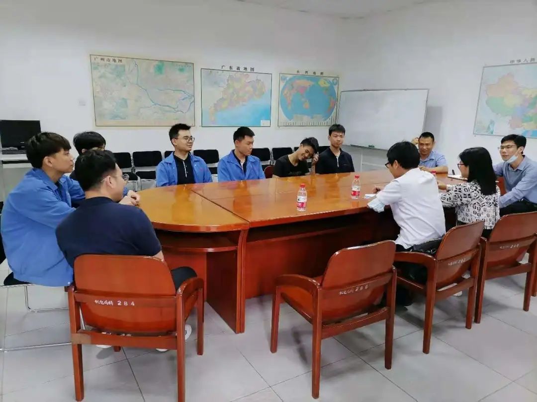 2021年4月28日,best365官网登录入口郑汉尚、刘大龙、刘燕芳指导老师到广州数控对18级实习生进行走访,通过走访,了解实习生现在的生活,工作情况,晋升渠道。