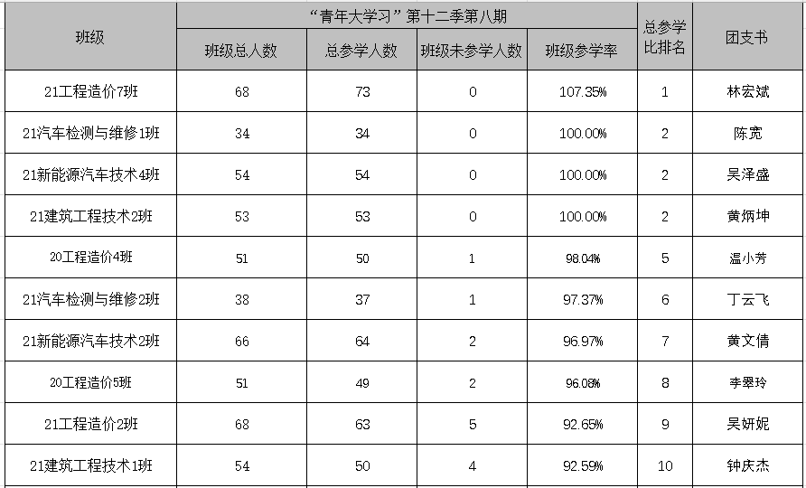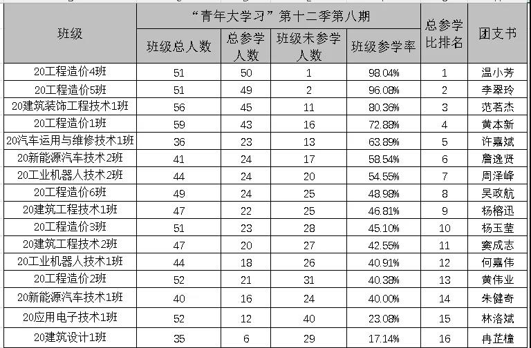 优秀团支参学数据汇总