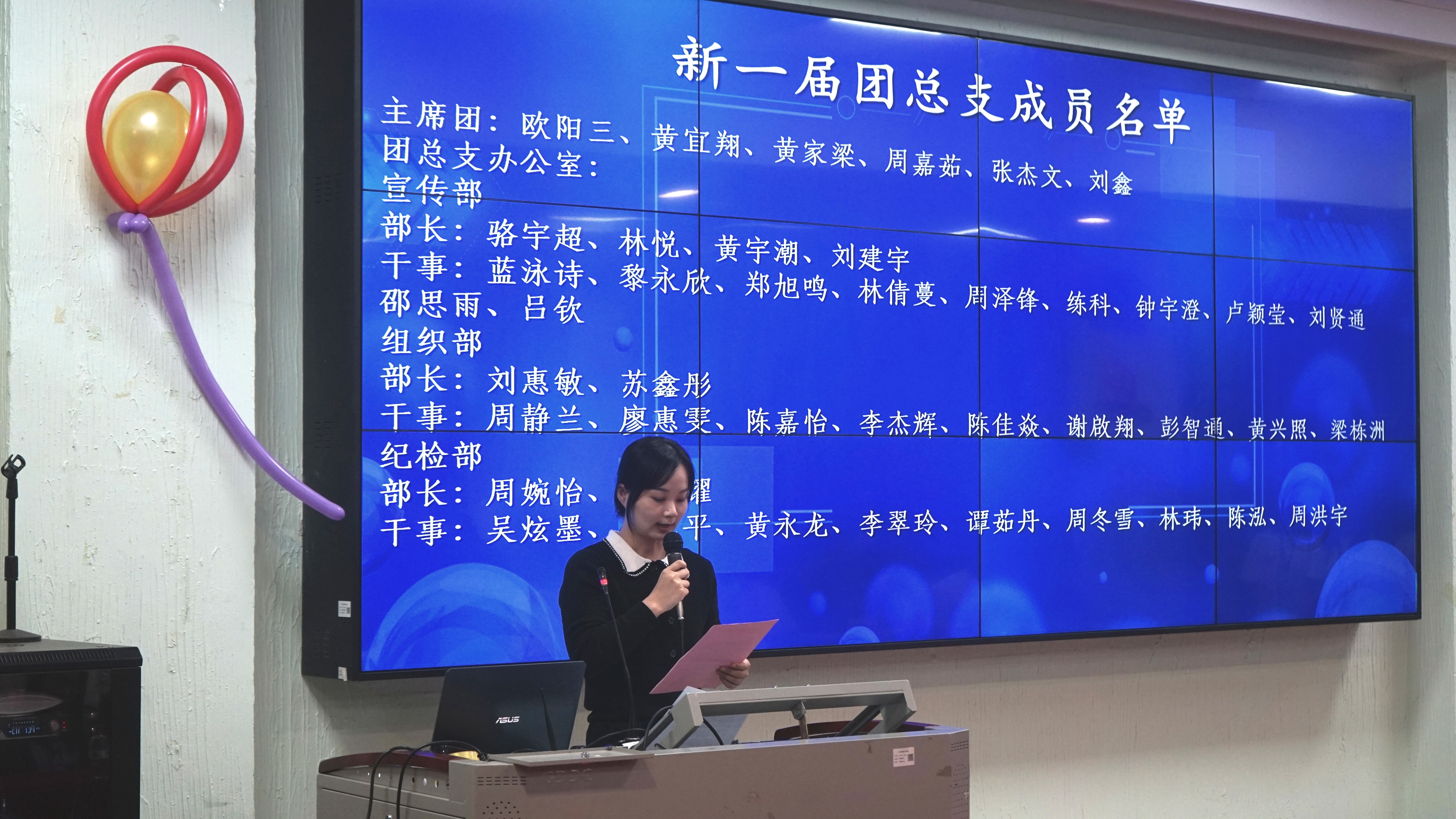 大会在全体成员演唱< 共青团团歌>中拉开序幕,然后由主持人介绍本次大会的内容。学工助理张蒙莉老师和关吟书记发表重要讲话。