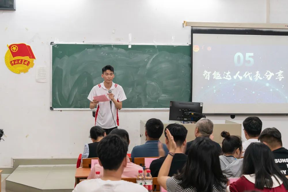 紧接着,由林文浩同学作为智能达人代表进行发言,他表示,“智能节”给予了同学们展现自己的舞台,同学们可以交流心得,切磋技艺,共同进步。同时“智能节”是对我们自身能力的检验,能够鞭策我们的不足,从而更加努力学习。
