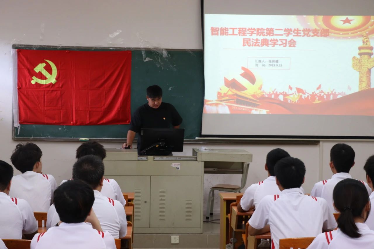 best365官网登录入口学生第二党支部于9月25日12:20在博学楼C栋506课室开展“三会一课”民法典学习会,出席本次会议的有best365官网登录入口学生第二党支部宣传委员张伟健老师以及全体学生党员,此次会议由张伟健老师主持。