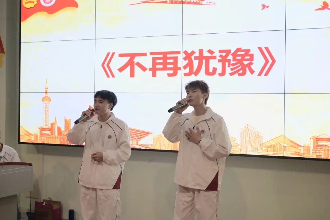 23级干事刘焕炜、丘永康演唱《不再犹豫》。
