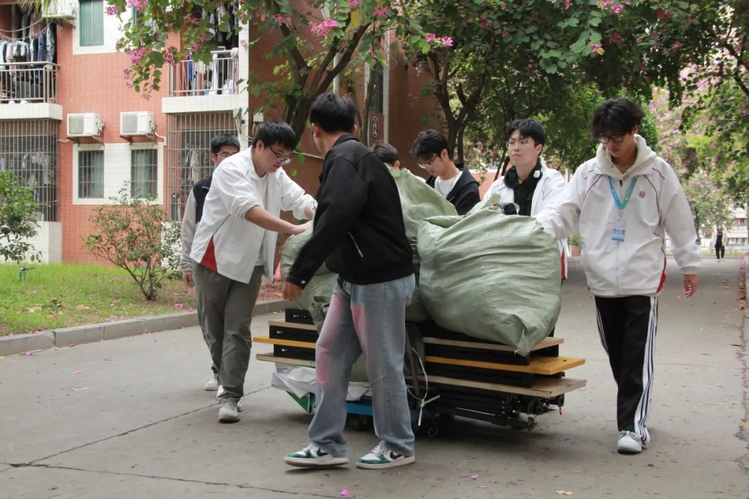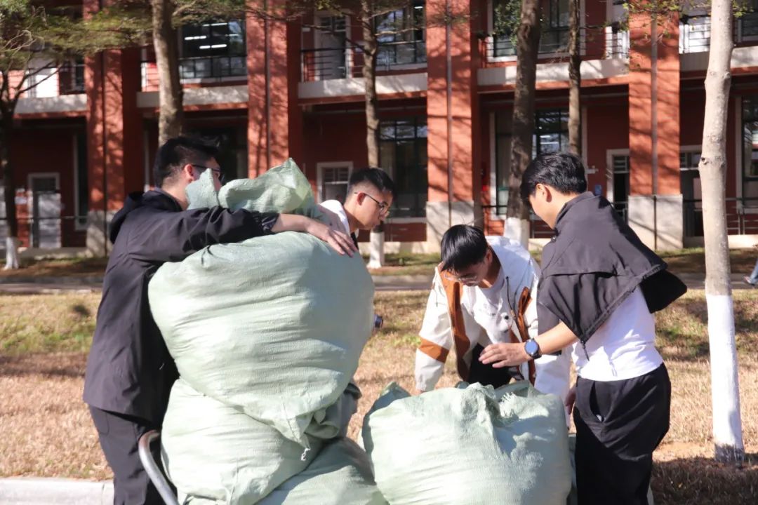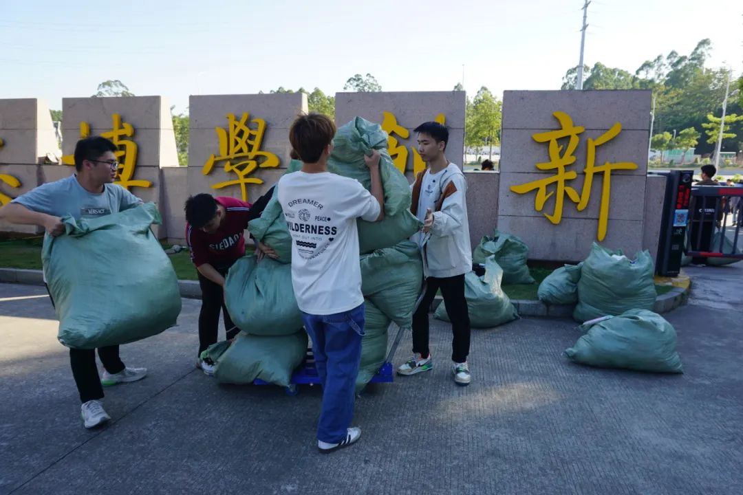 同学们捐赠出来的旧衣物,由志愿者统一整理打包搬运至校门口交给相关快递人员,随着快递车出发,这些旧衣即将开启一段新的旅程。同学们的爱心也将和这些快递一起传递给他人,同时也意味着此次旧衣回收捐赠活动画上了完美的句号!