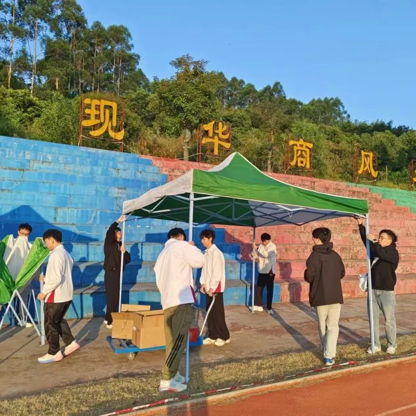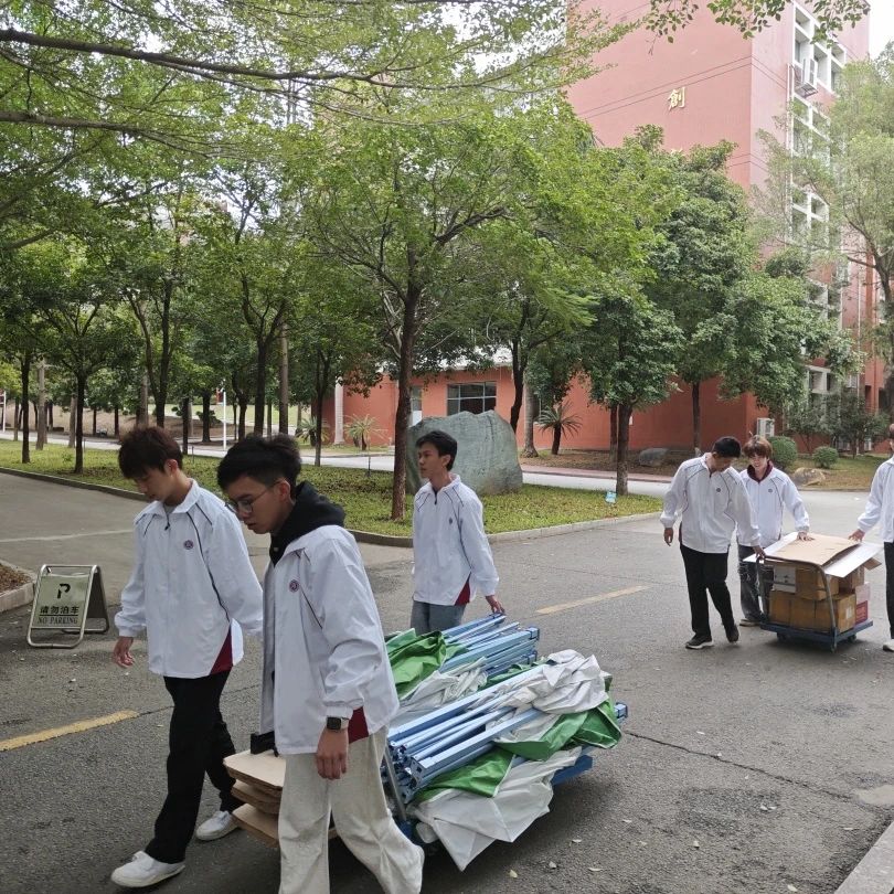 早上7点,志愿者们准时前往指定地点,分工明确,迅速完成了物资的搬运,以及学院大本营的帐篷搭建,为校运会的顺利进行提供了有利保障。