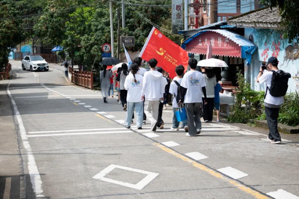 为深入贯彻落实省委关于实施“百千万工程”的决策部署,积极响应服务乡村振兴战略、促进民族地区共同繁荣发展的号召,广州华商职业学院岭韵创想突击队于2025年7月9日赴广州市增城区畲族村,开展文化调研与产业融合实践活动。本次活动由学院指导老师苟姣姣老师、骆玉婷老师带队,旨在深入民族乡村一线开展文化调研,挖掘整理畲族特色文化资源,为后续开发具有民族特色和市场潜力的文创产品奠定坚实基础,探索文化赋能产业、助力乡村发展的有效路径。