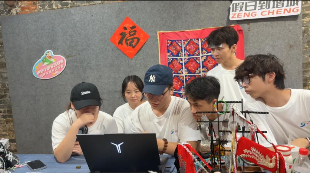 7月12日,广州华商职业学院岭韵创想突击队走访畲族服饰非遗传承人刘老师的尚雅苑工作室。双方就前期文化直播展开深入复盘,并探讨文创产品直播的合作前景。