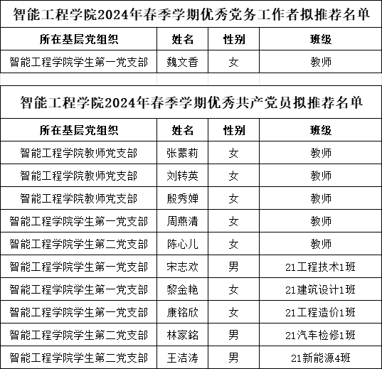 根据《中共广州华商职业学院委员会关于开展评选先进基层党组织、优秀共产党员优秀党务工作者的通知》,经党员个人申请,党总支委员会讨论研究,报学院党政联席会同意,拟推荐魏文香同志为优秀党务工作者,张蒙莉等10名同志为优秀共产党员,现将名单予以公示。