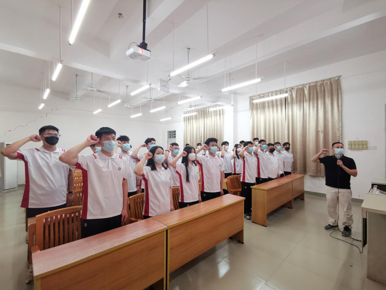 在学生党支部宣传委员戴乐毅老师带领下,19名预备党员在党旗前进行庄严肃穆的入党宣誓,在庄严的气氛下,会议圆满结束,相信他们会在群众中起到模范先锋作用,做一名合格的中国共产党员。