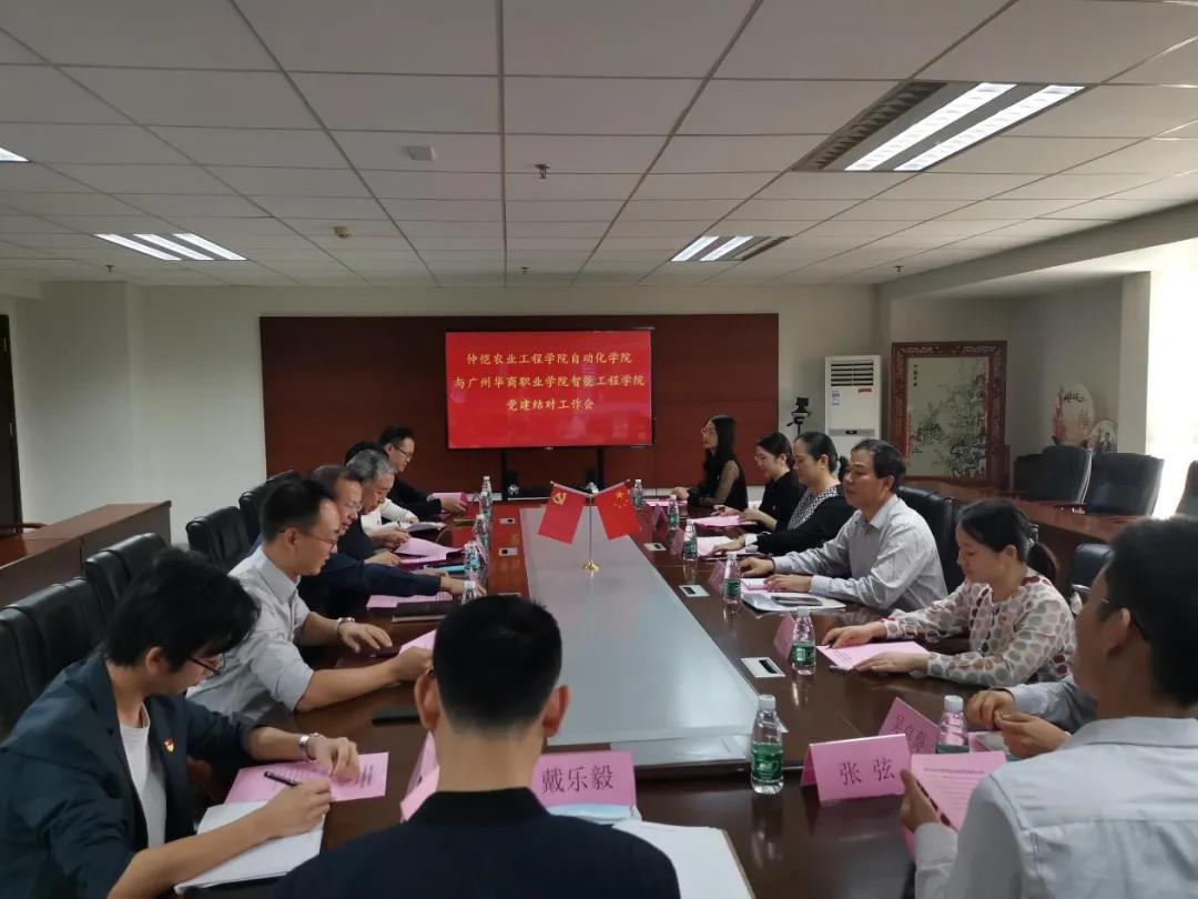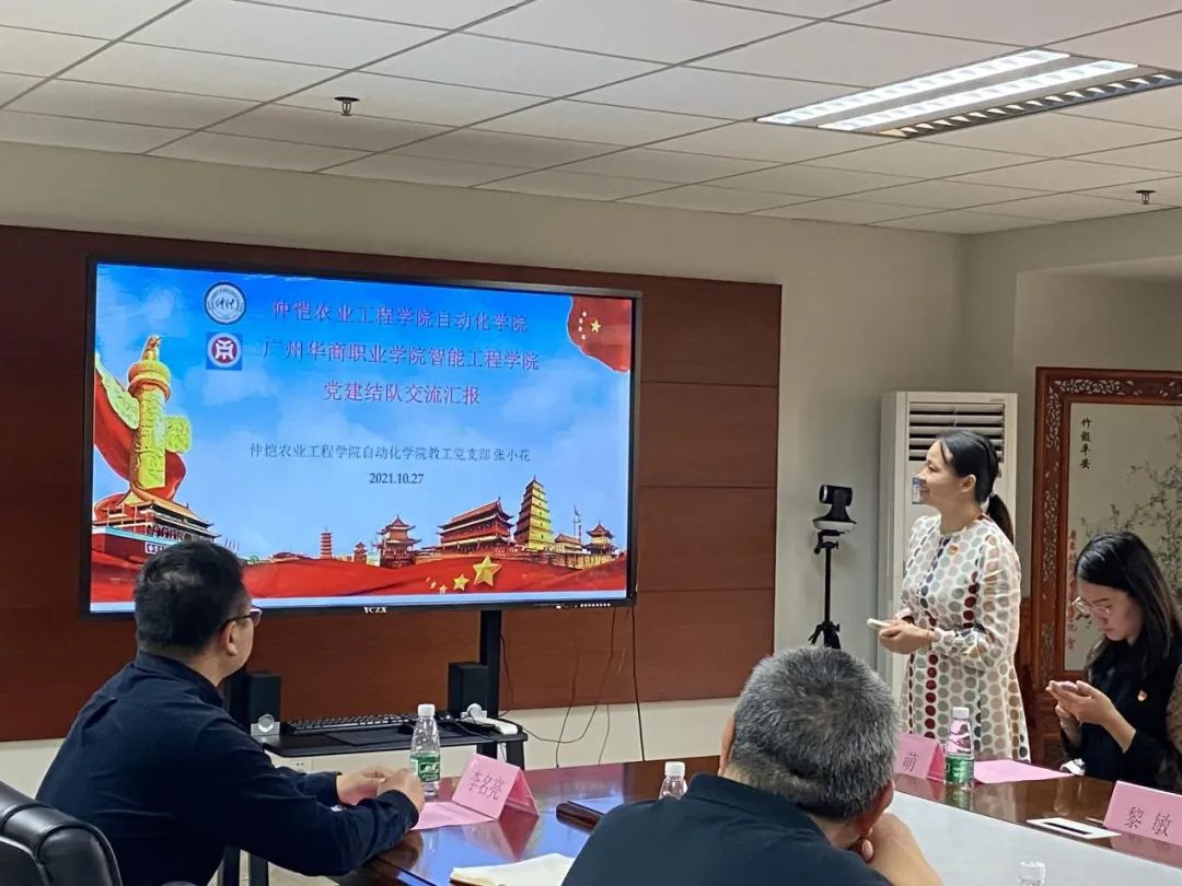 仲恺自动化学院教工党支部和学生党支部分别向我院介绍了党建工作及经验分享,自动化学院教工党支部以特色党建与教书育人相结合,以“一个中心、两个抓手、三个融合、四个引路人”为做法,融入培养人才的全过程。