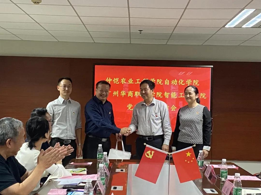 2021年10月27日下午,仲恺农业工程学院自动化学院党委书记刘新周一行七人到我院参加党建结对工作会。参加本次会议的有:仲恺农业工程学院自动化学院党委书记刘新周、党委副书记黄毅以及学院党务工作者,广州华商职业学院党委书记翁礼成教授、best365官网登录入口院长黄河、党总支副书记何标以及学院党务工作者,本次会议由何标副书记主持。