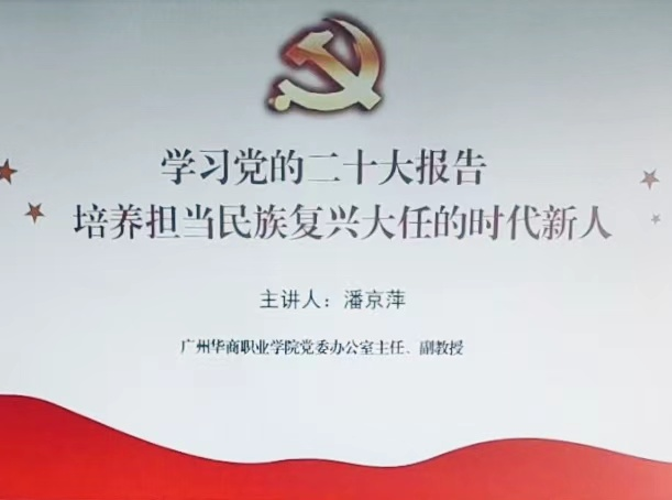 11月15日中午12点20分,由潘京萍老师讲述党的二十大会议主题和核心内容、党的二十大召开的国际国内背景、报告的新观点、新论断、新思想。潘京萍老师强调我们要深入学习宣传贯彻党的二十大精神,在充满光荣与梦想的新时代,在强国复兴的新征程,踔厉奋发、勇毅前行,勇担中华民族伟大复兴的时代新人