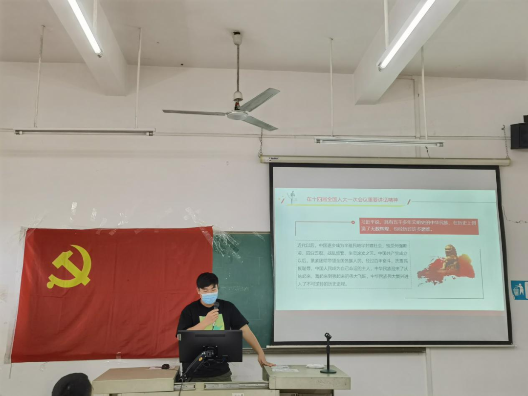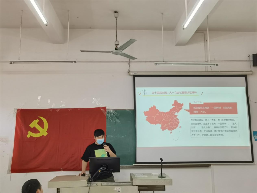 为进一步深入学习宣传贯彻十四届全国人大一次会议精神,深刻领会其本身的重大意义、丰富内涵,best365官网登录入口学生第二党支部于3月22日12:30分在博学楼C栋507课室开展“三会一课”理论学习会,深入学习贯彻十四届全国人大一次会议精神。出席本次会议的有best365官网登录入口学生第二党支部宣传委员张伟健老师、全体党员和预备党员,本场会议由张伟健老师主持。