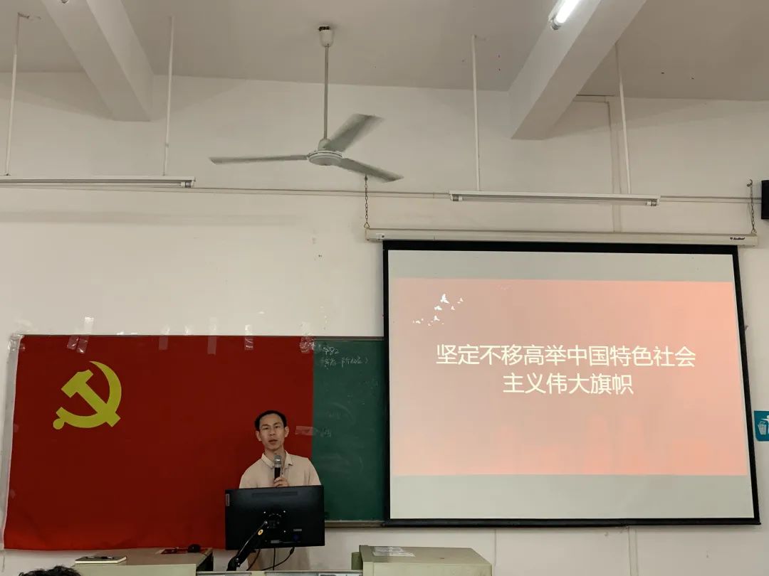旗帜引领方向,旗帜凝聚力量。中国共产党在百年奋斗历程中,坚定不移高举中国特色社会主义旗帜,指导革命、建设、改革和新时代伟大实践不断从胜利走向胜利,历史证明了举旗鲜明对党和国家事业发展壮大的重要性。best365官网登录入口学生第一党支部于5月31日12:00在博c507课室开展了“三会一课”学习会议,出席本次会议的有best365官网登录入口学生第一党支部宣传委员戴乐毅老师以及全体学生党员。