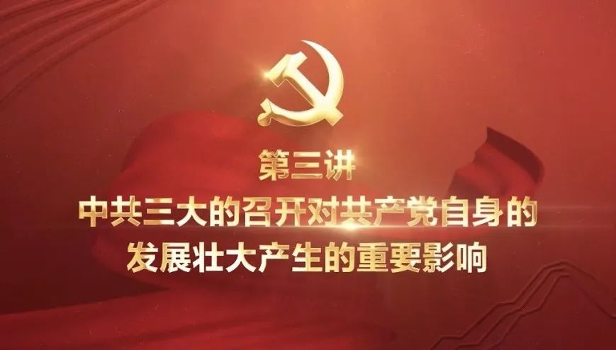 今年是中共三大召开100周年,此次党课学习立体化展示了中共三大历史和理论研究成果,讲述了从社会革命到国民革命的历史性转变,中国共产党政治舞台迅速扩大的过程,加速了中国革命的步伐。通过视频学习,全体党员更加了解了中国三大召开的历史背景与重要意义。