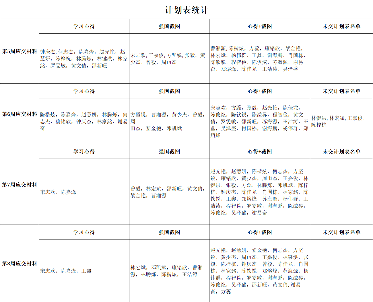 10月份学生党员学习计划统计表