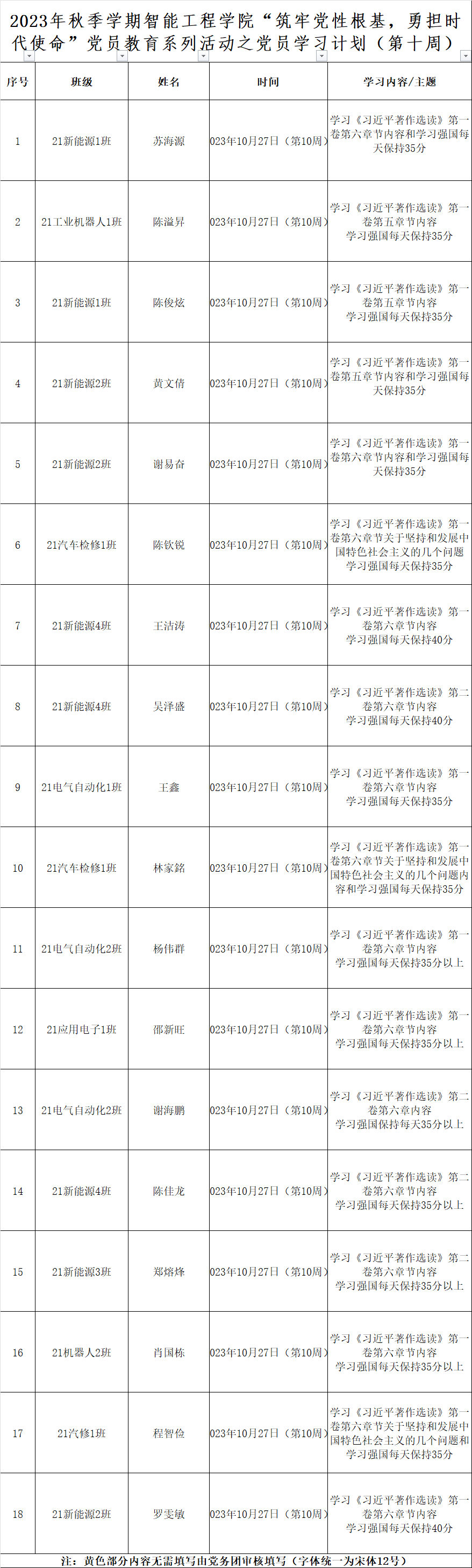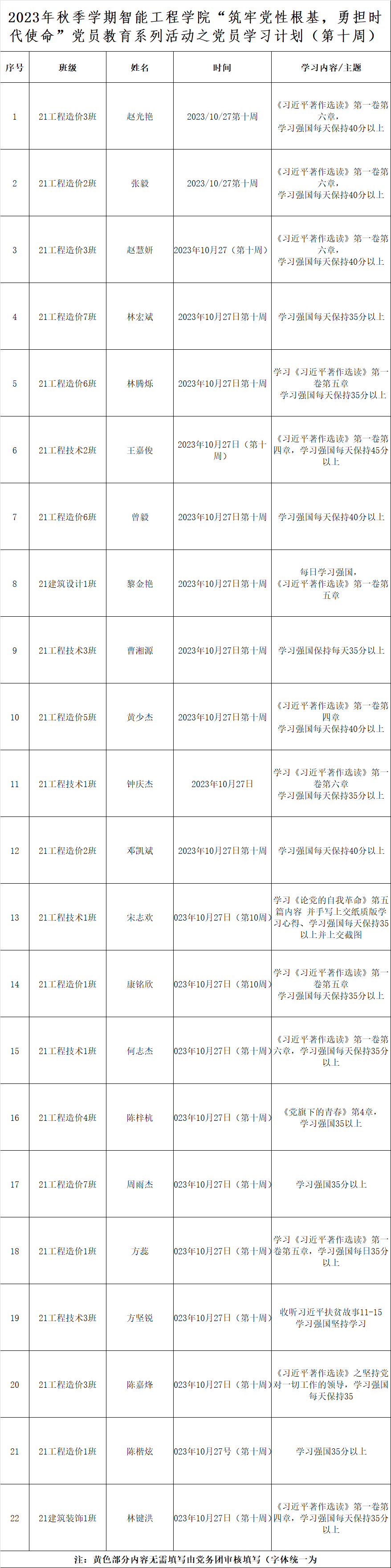 第十周学生党员学习计划表