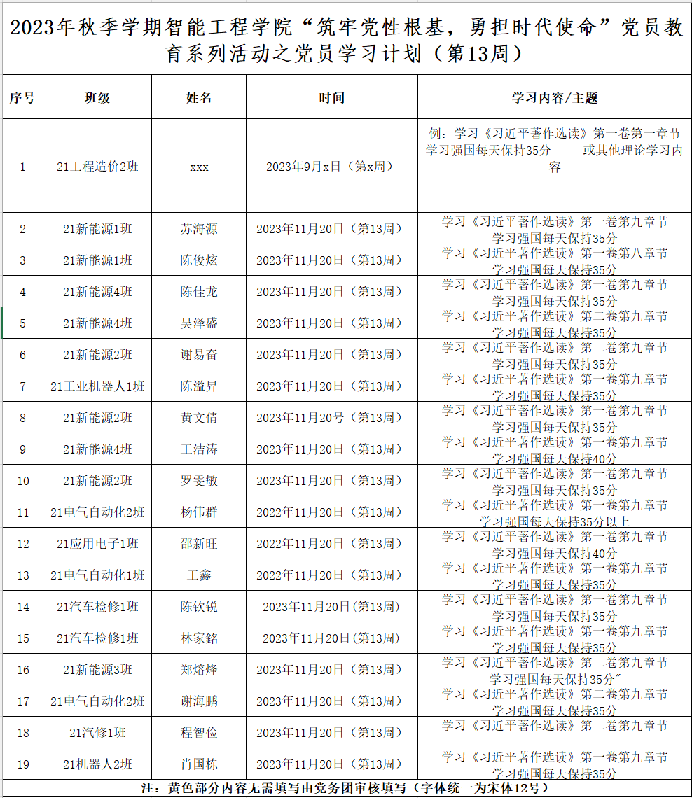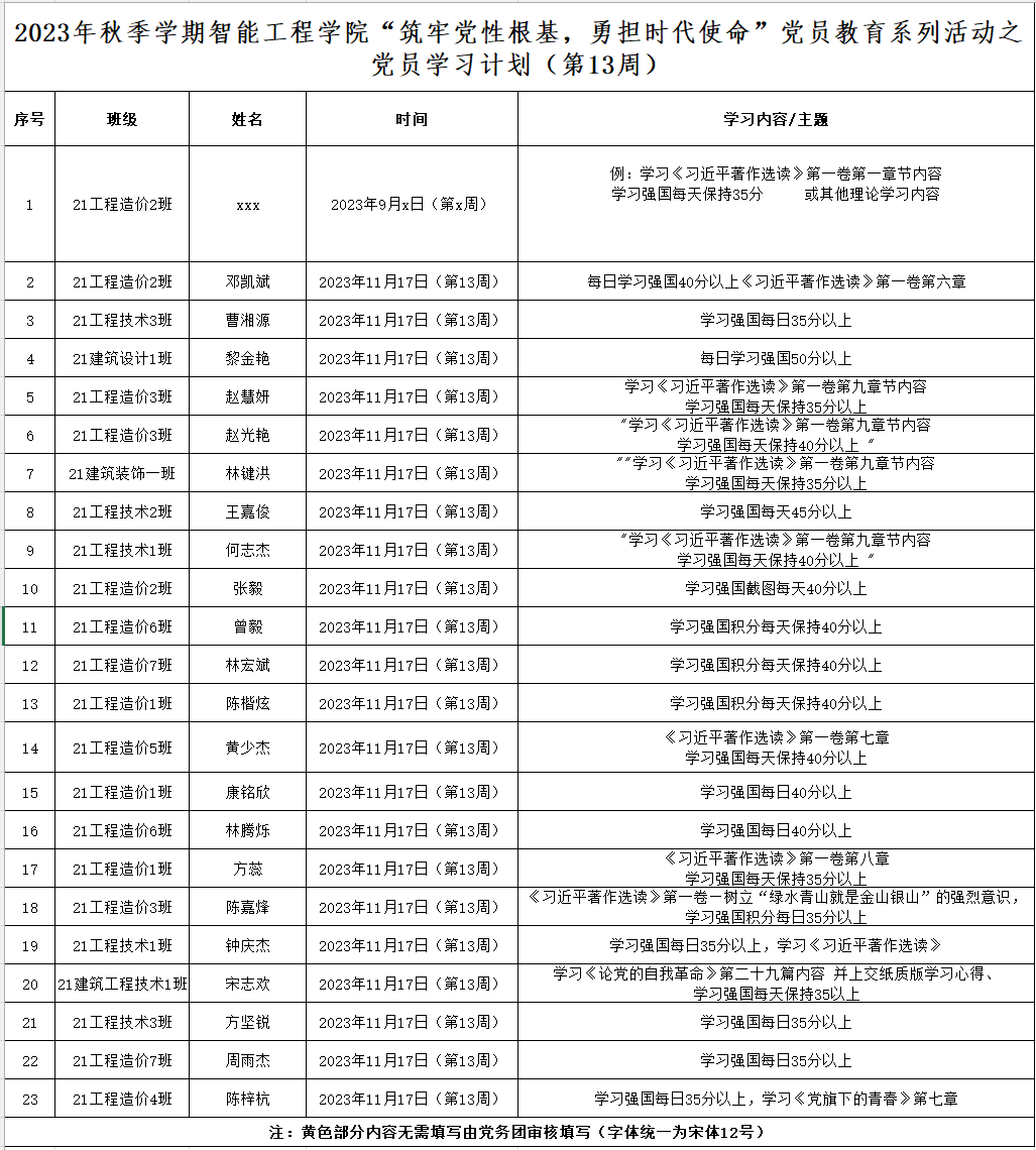 第十三周学生党员学习计划表