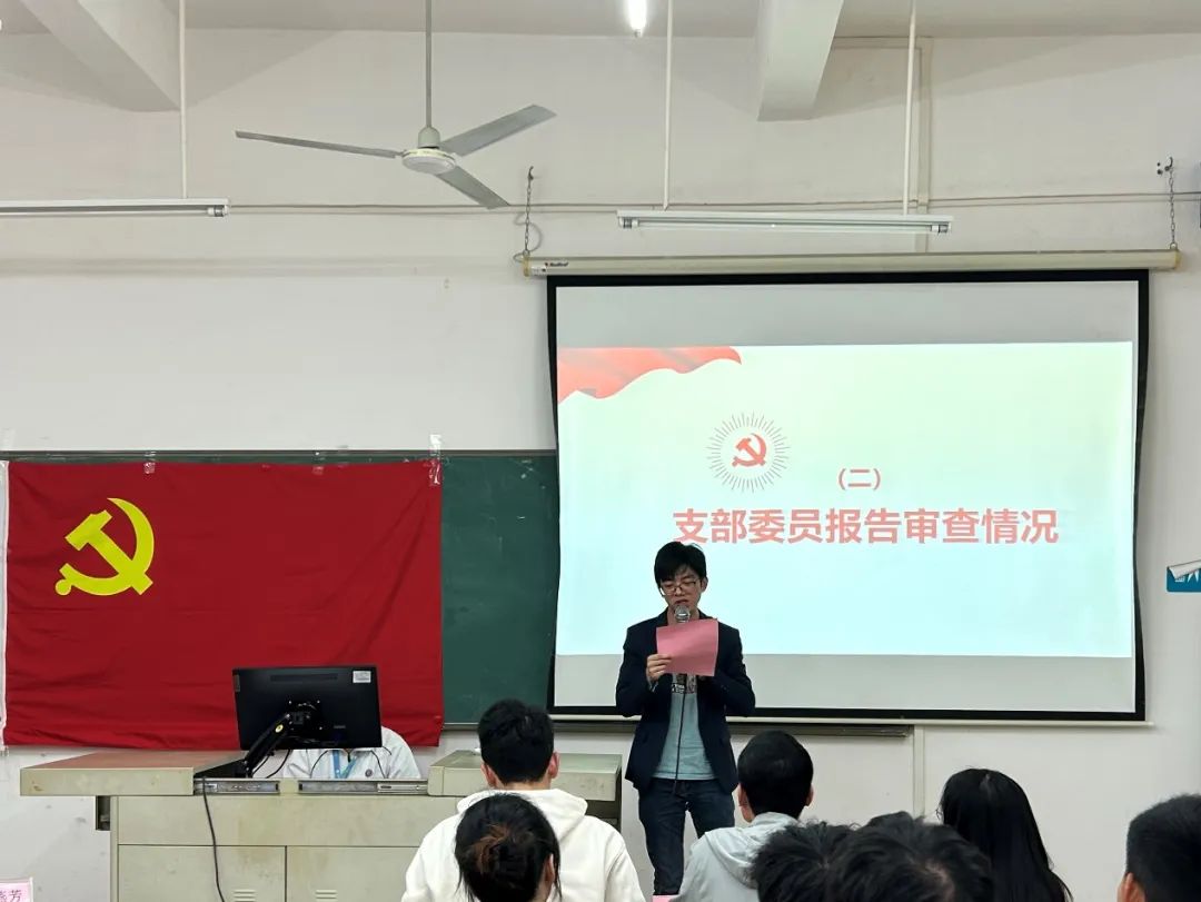 支部委员郭梓锋同志代表支部委员会宣读了对杨祖熙等13名发展对象的政治审查报告。杨祖熙等13名同志思想品质良好、入党动机端正、入党材料、内容产全、手续完善,同意履行入党手续。